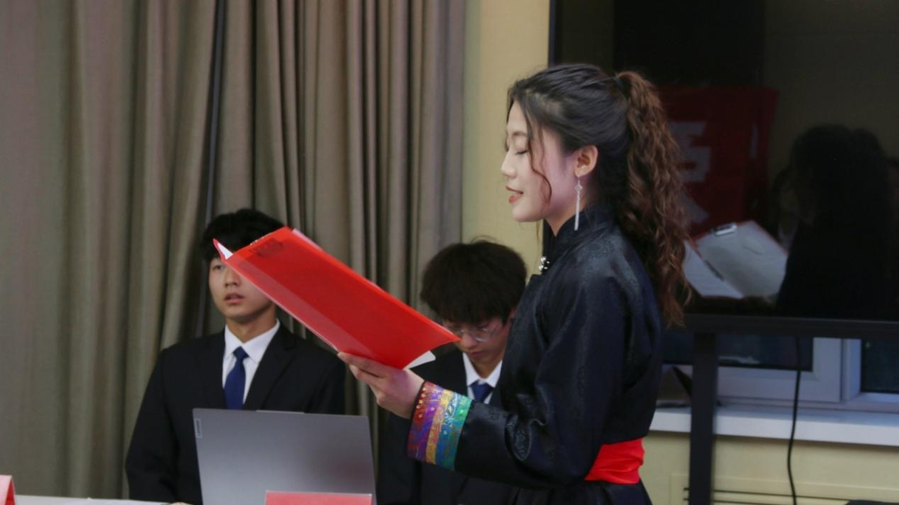 所有选手演讲结束后,评委老师对参赛选手的演讲进行了评价和赛事总结。默原老师指出本次活动是对青年学生一次意义深远的爱国主义教育,青年一代在国防教育中扮演着重要的角色;同时,也给选手们在演讲比赛中的表现提了建议,演讲实质上是一种舞台艺术表现,需要投入激情,保持专注,展示端庄的气质,而不能姿态随意,言语过于口语化,强调了演讲脱稿的必要性;另外,对少数民族选手的语言表达流畅度表示了赞赏,体现出了学院对中华民族共同体意识教育的深入实践。