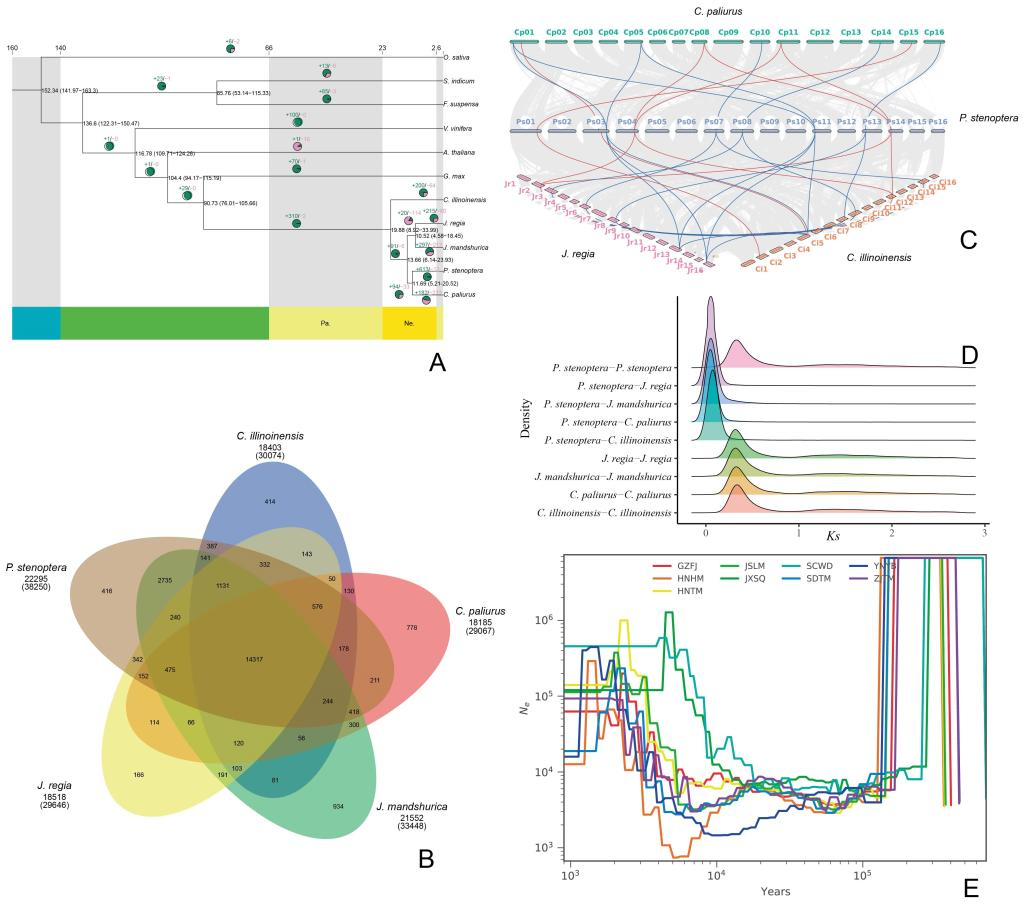 近期,内蒙古自治区高等学校蒙古高原生物多样性保护与可持续利用重点实验室成员、我校今年会官方网站李永教授团队在进化生物学领域期刊“Plant Diversity”上发表最新研究成果“Multi-omics analyses provide insights into the evolutionary history and the synthesis of medicinal components of the Chinese wingnut”。