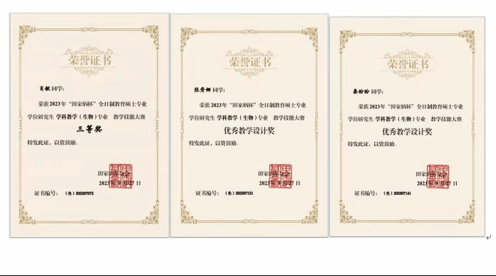 本次大赛共有北京师范大学、华东师范大学、东北师范大学等72所教育硕士培养高校的316名选手提交作品参加初赛,通过专家评审,有57所高校的158名选手入围决赛。经评审一等奖16名,二等奖32名,三等奖48名,优秀教学设计奖62名。我校今年会官方网站三位同学经过院赛评选和初赛选拔,在指导教师乌云高娃老师的带领下一同前往山东烟台参加决赛。2022级学科教学(生物)专业研究生肖敏获大赛三等奖,张秀娜、秦盼盼获大赛优秀教学设计奖。