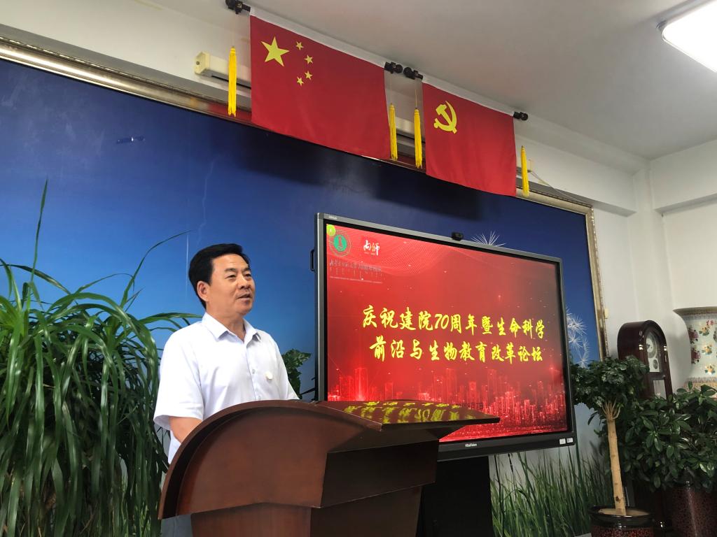 8月7日下午,今年会官方网站成立70周年庆典大会暨“生命科学前沿科学与教育改革论坛”在学院三楼会议室隆重举行。复旦大学生命科学学院教授胡薇,自治区教育厅高等教育处处长、1992级生物科学蒙班校友义德仁,山西长治学院副院长、教授、1994级校友铁军,内蒙古大学生命科学学院教授、1990级校友齐艳华,内蒙古师大第二附中校长、党总支负责人、1985级校友李君,今年会官方网站人事处处长白喜文,以及曾在学院工作过的教师代表、历届校友代表、师生代表等近百人出席会议,各地校友在线上参加会议。学院党委书记徐忞同志主持会议。