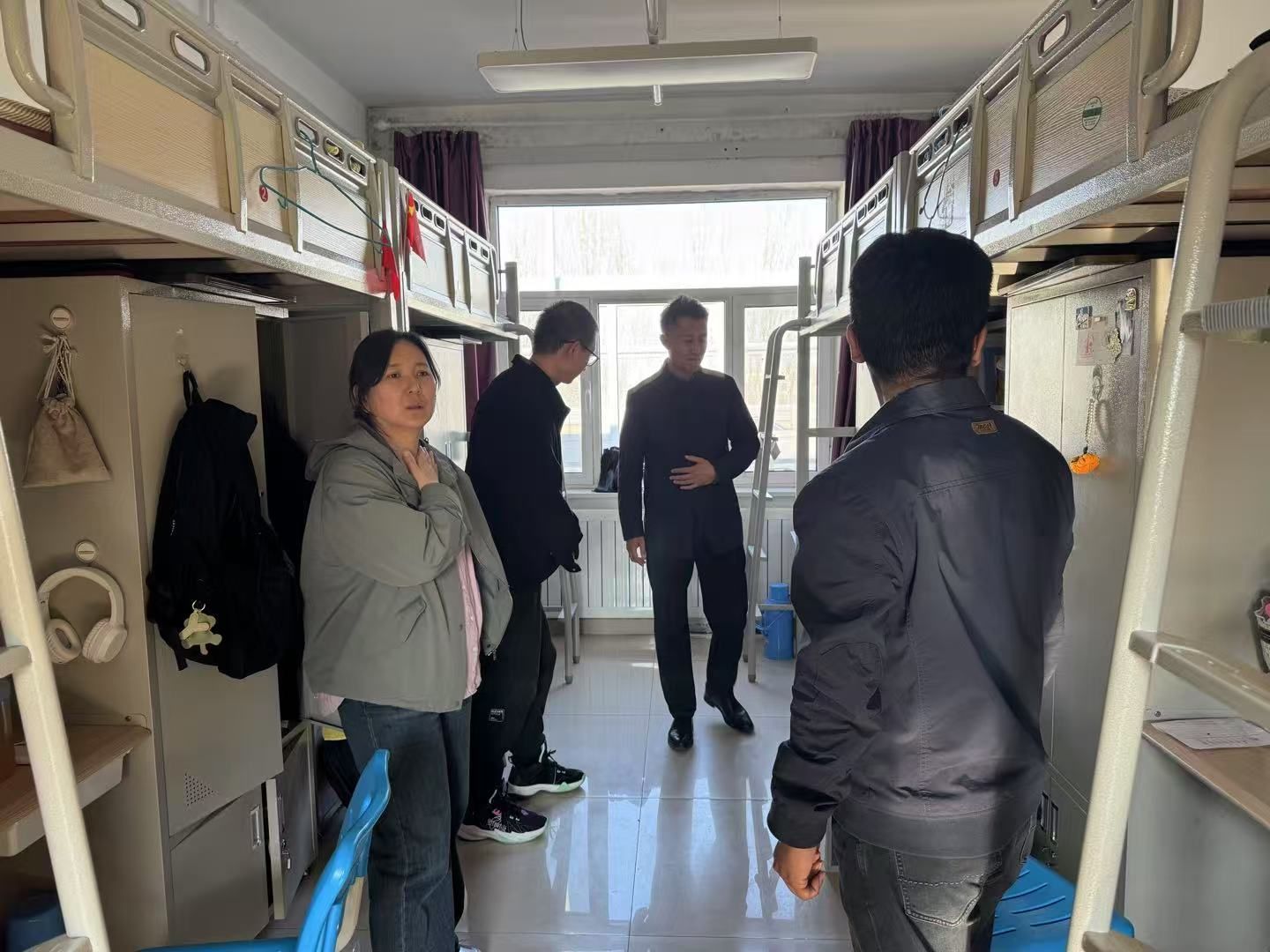 检查过程中,学院领导与学生亲切交流,了解学生近期的学习生活情况,并重点围绕是否存在使用违规电器、存放违禁物品等情况进行逐一排查。针对发现的个别问题,现场予以指出并督促整改,强调要时刻绷紧安全这根弦,共同维护良好、安全、和谐的宿舍环境。