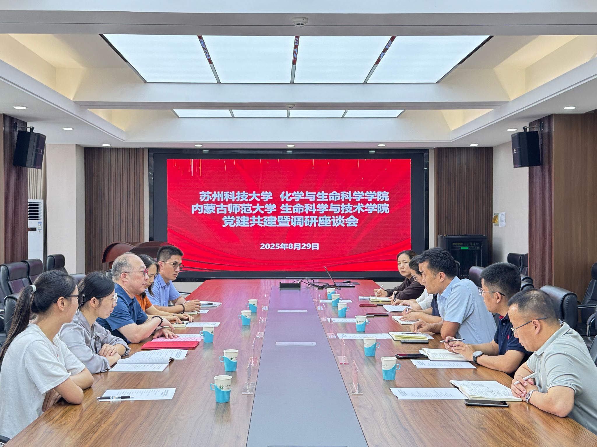 8月29日下午,苏州科技大学化学与生命科学学院党委书记徐治初一行来今年会官网开展党建共建调研,学院领导班子、相关党支部、系部负责人参加调研座谈会。座谈会由苏小波主持。