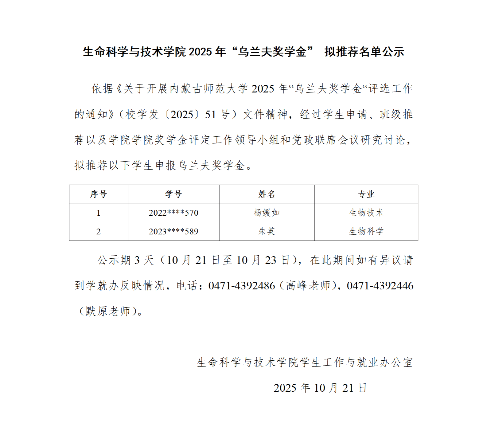 今年会官方网站2025年“乌兰夫奖学金”拟推荐名单公示